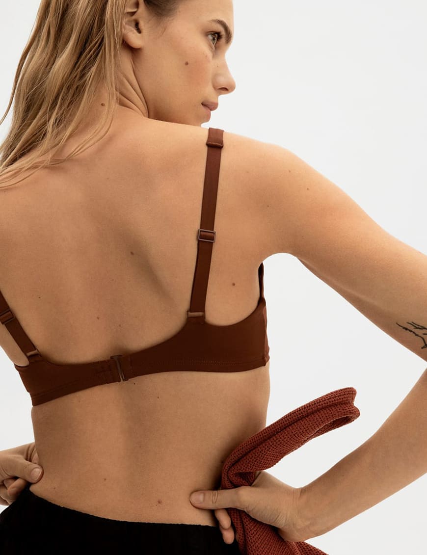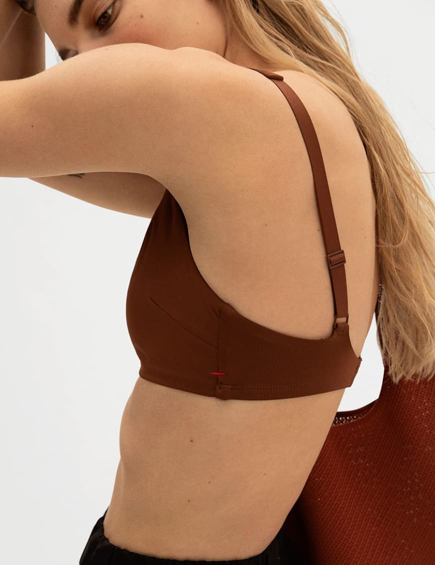 A bralette featuring a square neckline, designed for comfort and an invisible look under clothing, combining style with functionality.